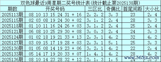 上期开奖:福彩双色球第2025138期奖号为:10 13 14 23 24 27 + 15,其中红球三区比为1:2:3,奇偶比为3:3,首尾间距为17,大小比为3:3。