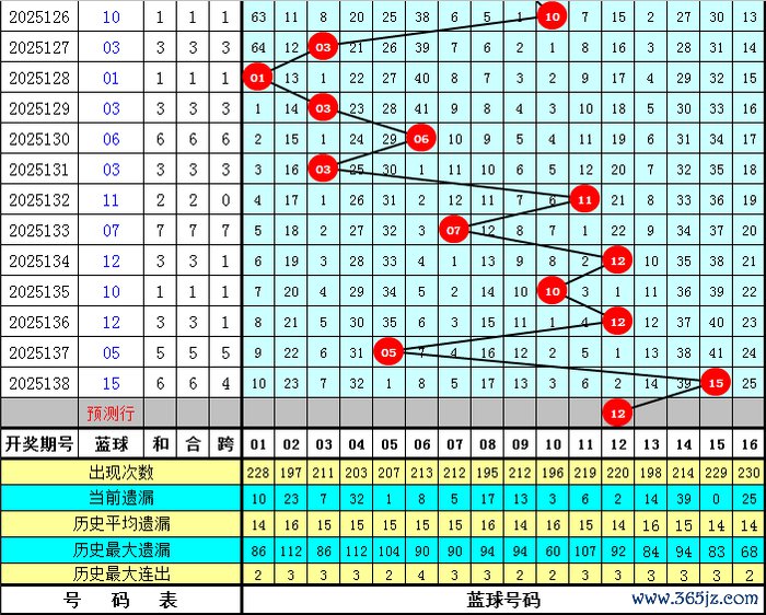 蓝球分析:最近9周星期二蓝球区别开出号码:16、02、03、08、13、03、06、07、12,本周星期二瞻望蓝球为偶数号码,关怀蓝球号码12。