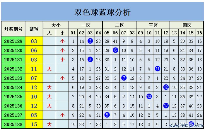 上期蓝球开出四区号码15